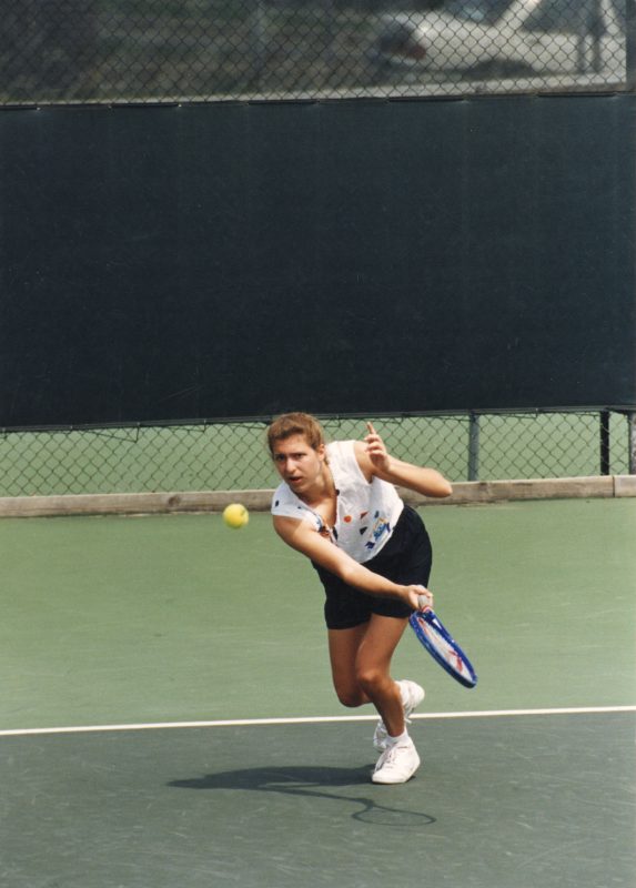 Eve’s Hornet teams won three MIAA championships, and Eve was the number one singles flight champion in 1995 and the number one doubles flight champion in 1996. She was number one singles flight runner-up in 1996 and 1997, and number one doubles flight runner-up in 1995.